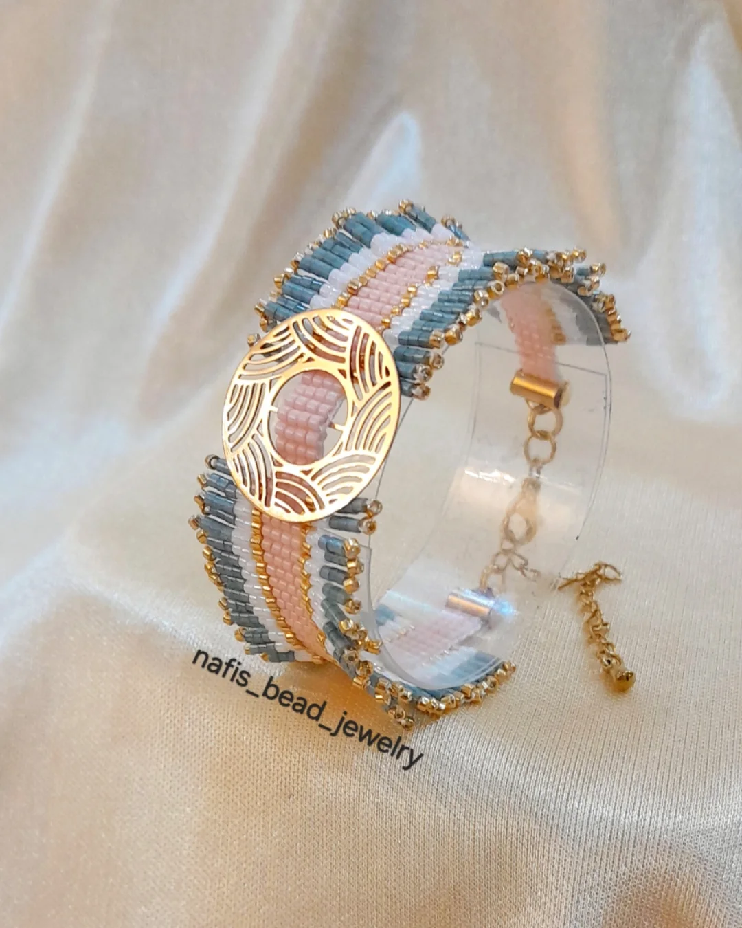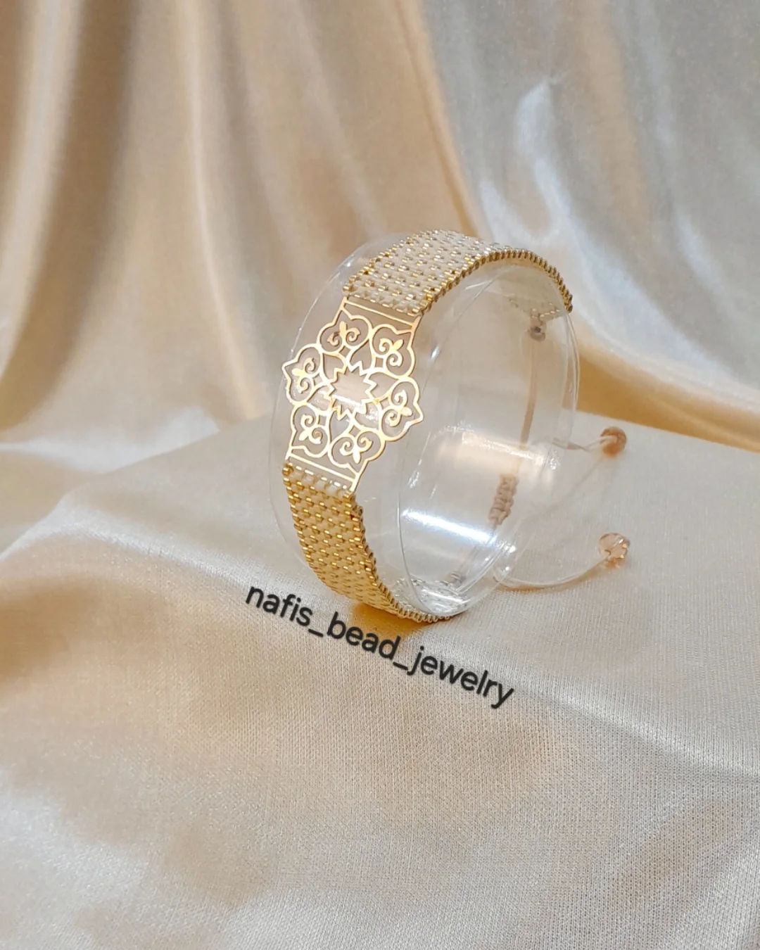 دستبند سفارشی پلاک طلا بافته شده با مونجوقهای خاص و با کیفیت میوکی