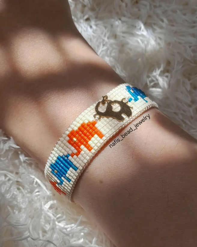 دستبند پلاک طلا طرح فیل، بافته شده با مونجوقهای با کیفیت میوکی و بند کشویی! شما میتوانید با توجه به طرح پلاک، طرح دستبند دلخواهتان را انتخاب کنید و بدون پلاک آن را بدهید و خودتان پلاک را بهش متصل کنید.