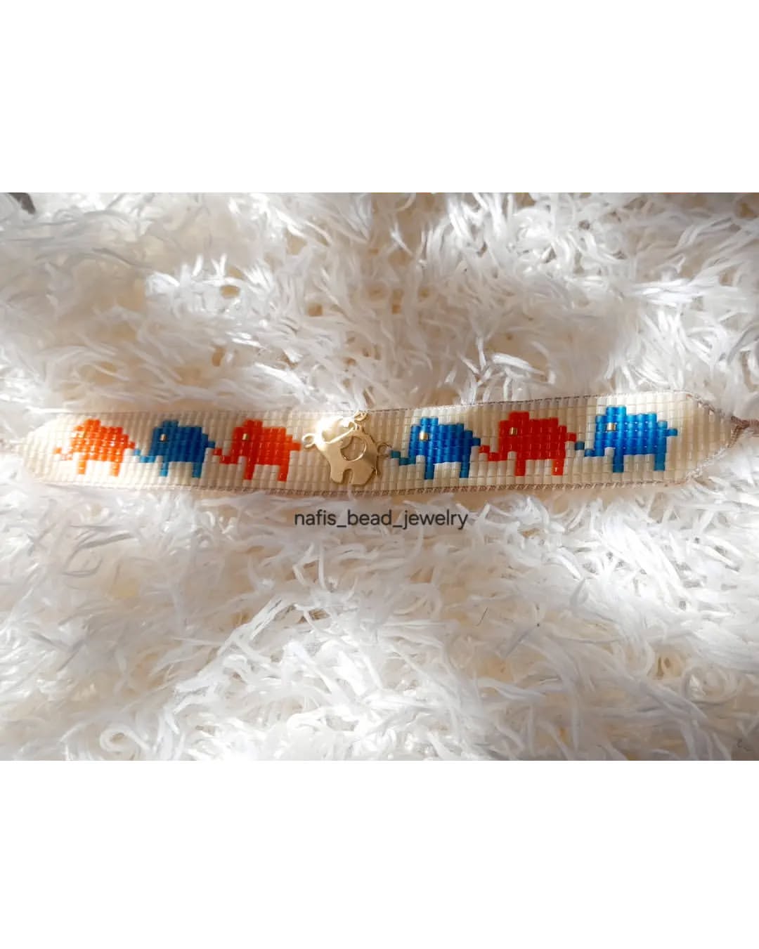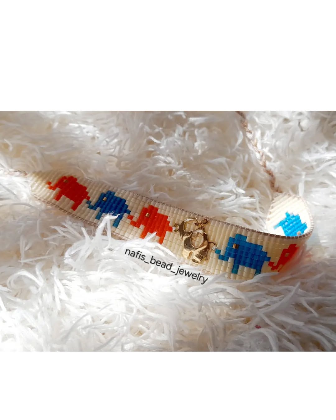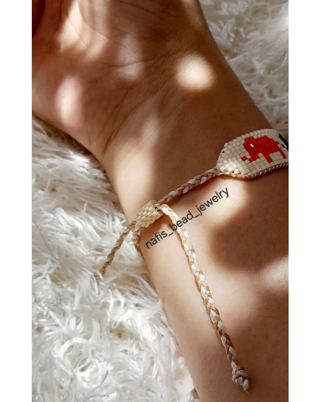 دستبند پلاک طلا طرح فیل، بافته شده با مونجوقهای با کیفیت میوکی و بند کشویی! شما میتوانید با توجه به طرح پلاک، طرح دستبند دلخواهتان را انتخاب کنید و بدون پلاک آن را بدهید و خودتان پلاک را بهش متصل کنید.