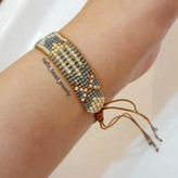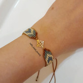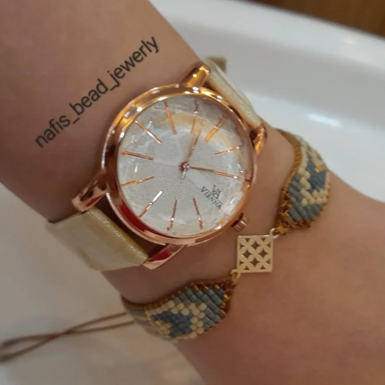 کار امروز دستبند با پلاک طلا! متریال:ترکیب مونجوق اعلای میوکی و مونجوق ماتسونو برای تعدیل کار نوع بافت:بافت با دستگاه اتصالات:بند کشویی اسلاید آخر طرح ژورنالی کار هست که با رنگبندی دلخواه و با حذف قسمت میانی و جایگزینی پلاک طلا اجرا شده! اگر شما پلاکی دارید که طرح دستبندش قدیمی شده و یا اگر پلاکی رو در طلافروشی پسندیدید ولی طرح ویا رنگ دستبند اون رو نمیپسندین،میتونید با توجه به طرح پلاک،طرح دستبند دلخواهتون رو انتخاب کنید و بدون پلاک اون رو بدید و خودتون پلاک رو بهش متصل کنید! دستبند بدون پلاک در اسلایدها نمایش داده شده! در زمانه ای که به خاطر گرون شدن طلا همه روی به طرح های ظریف و سبک میارن،با انتخاب یه طرح دستبندی زیبا میتونید جلوهی طلای خودتون رو صد چندان کنید!
