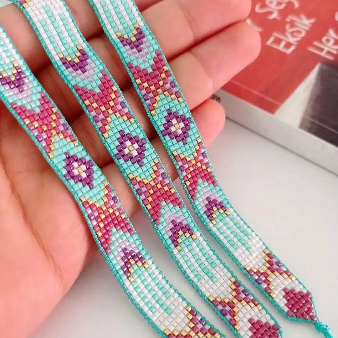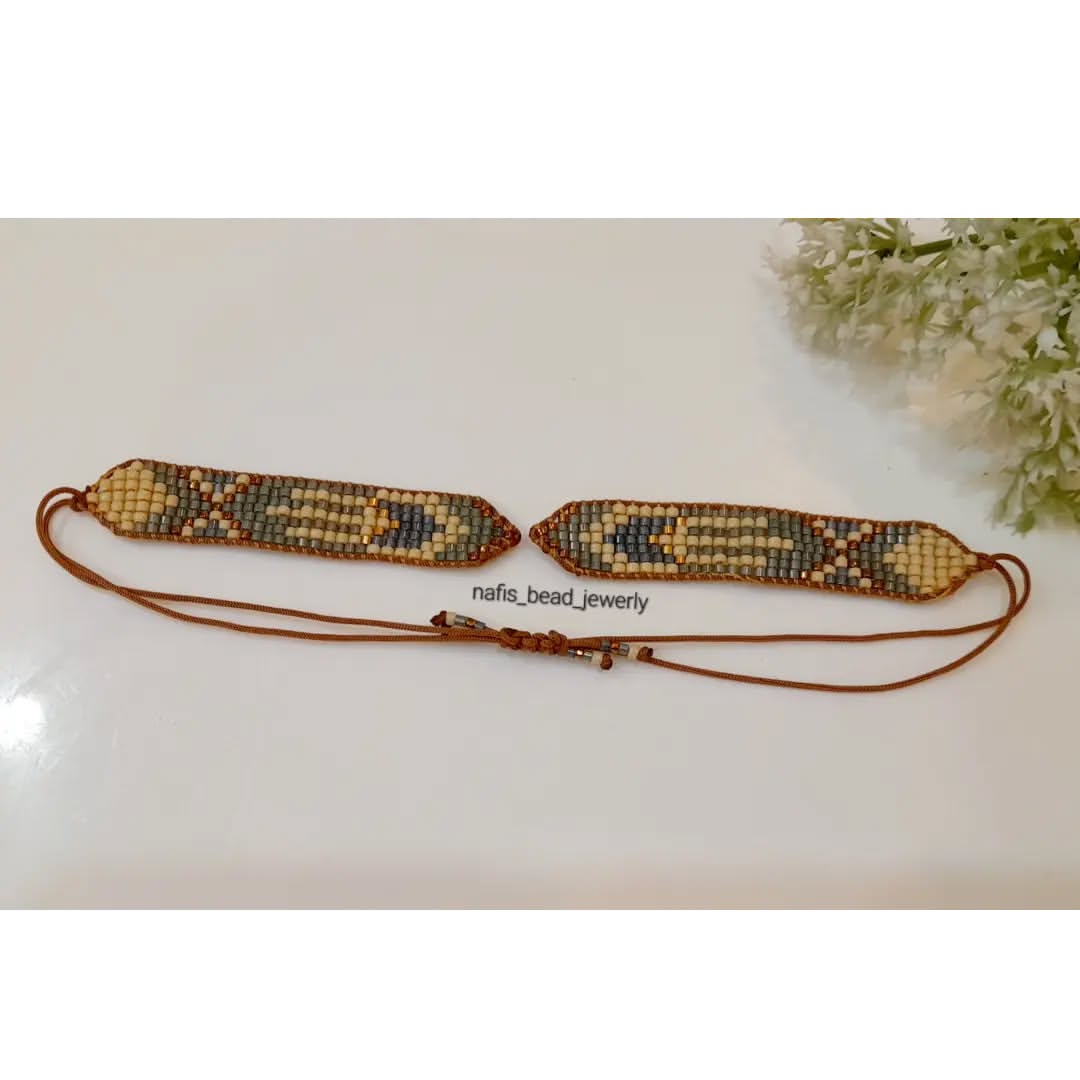 کار امروز دستبند با پلاک طلا! متریال:ترکیب مونجوق اعلای میوکی و مونجوق ماتسونو برای تعدیل کار نوع بافت:بافت با دستگاه اتصالات:بند کشویی اسلاید آخر طرح ژورنالی کار هست که با رنگبندی دلخواه و با حذف قسمت میانی و جایگزینی پلاک طلا اجرا شده! اگر شما پلاکی دارید که طرح دستبندش قدیمی شده و یا اگر پلاکی رو در طلافروشی پسندیدید ولی طرح ویا رنگ دستبند اون رو نمیپسندین،میتونید با توجه به طرح پلاک،طرح دستبند دلخواهتون رو انتخاب کنید و بدون پلاک اون رو بدید و خودتون پلاک رو بهش متصل کنید! دستبند بدون پلاک در اسلایدها نمایش داده شده! در زمانه ای که به خاطر گرون شدن طلا همه روی به طرح های ظریف و سبک میارن،با انتخاب یه طرح دستبندی زیبا میتونید جلوهی طلای خودتون رو صد چندان کنید!