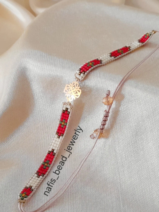 این پلاک طلا با وزن ۱۵۰ سوت با طراحی خاص و اتصالات بند کشویی با نخ دست بندی ارائه میشود. انواع پلاک با طرح های اسم و ماه تولد با وزن و سایز دلخواه پذیرفته میشود.