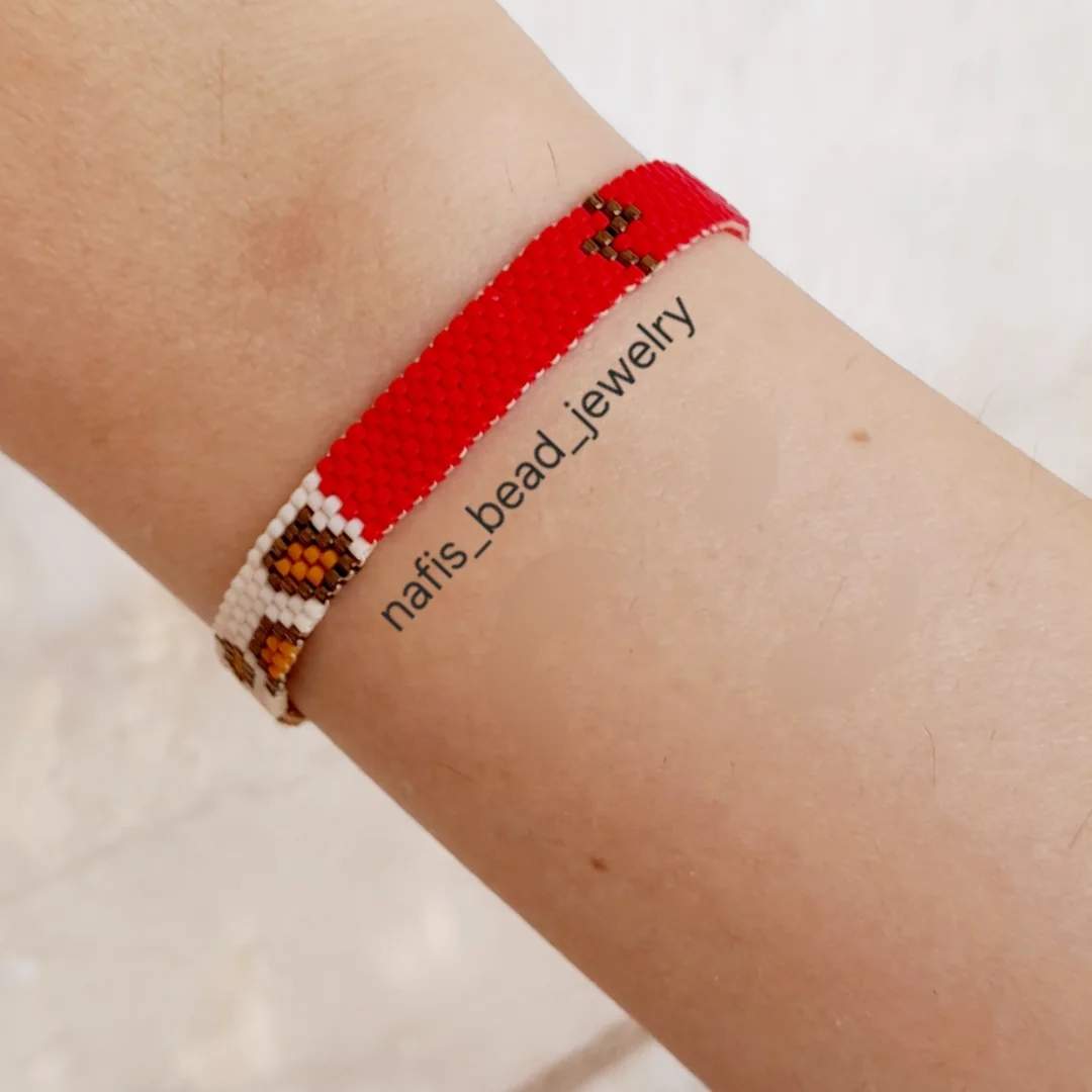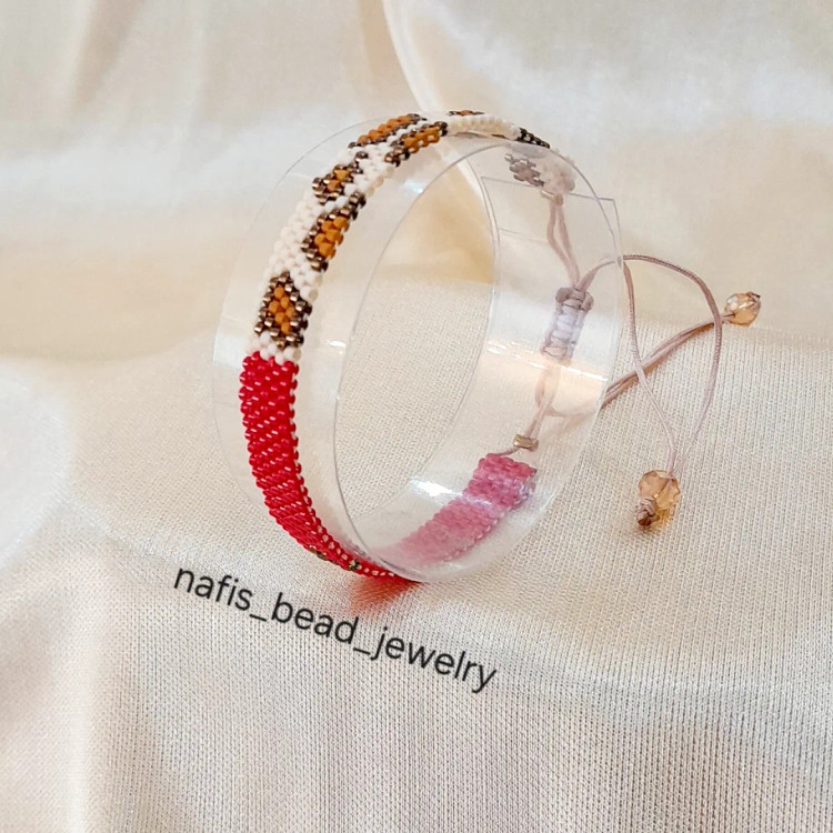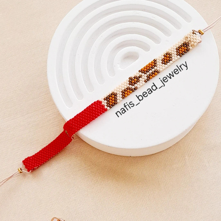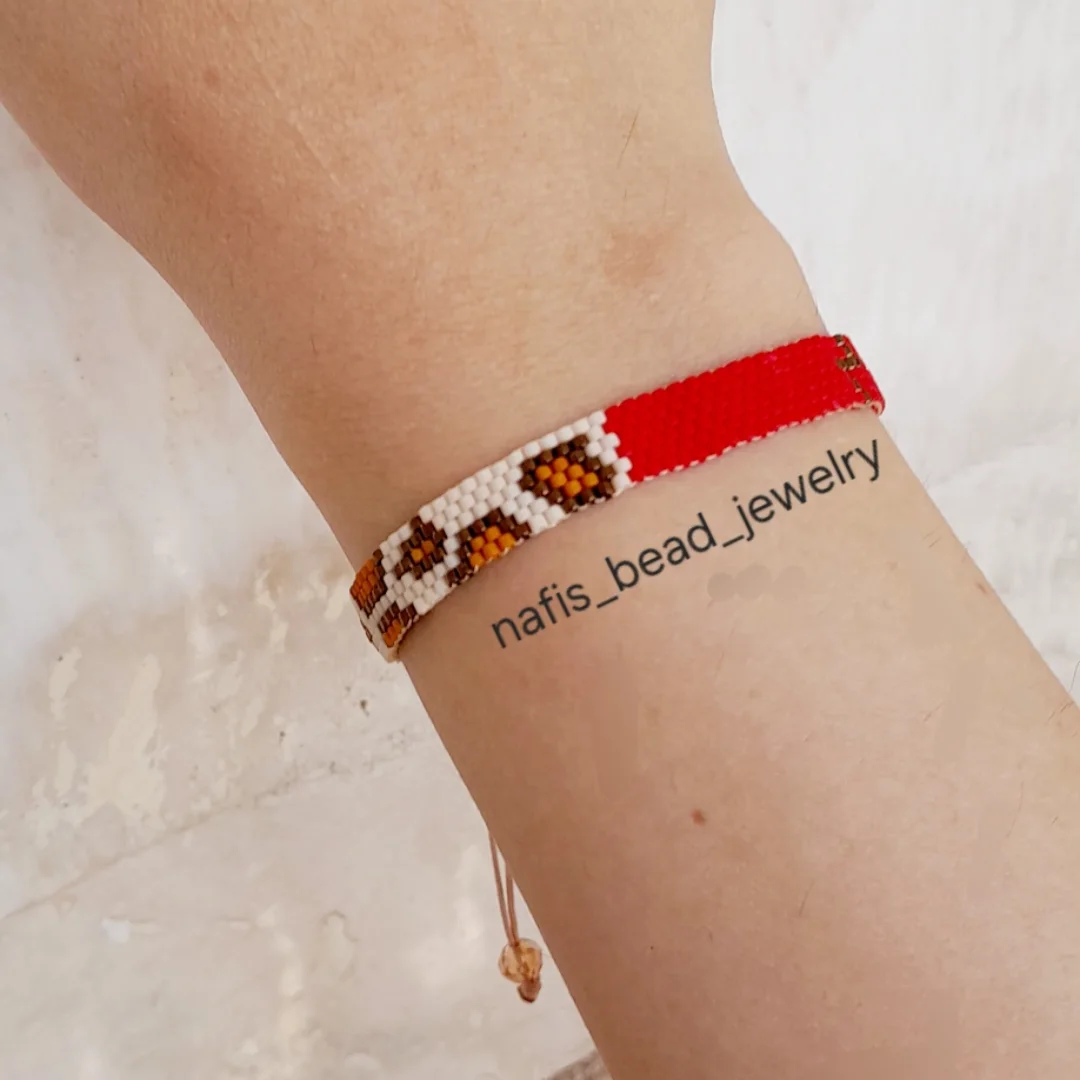 دستبند نیمه پلنگی،با متریال خاص میوکی ژاپنی! قابل به عنوان پابند! اتصالات بند کشویی و نخ دستبندی! قابل اجرا با اتصالات استیل! طول دستبند ۱۴ سانت برای مچ معمولی ‼برای مچ پرتر تا ۱۶ سانت قابل اجرا با کمی افزایش قیمت!