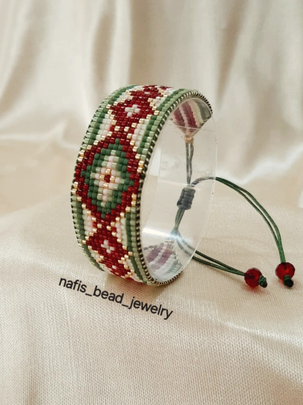 دستبند بافته شده با مونجوقهای خاص و با کیفیت میوکی ژاپن! اتصالات بند کشویی با نخ دندلیون! رنگبندی به دلخواه شما قابل تغییر است.