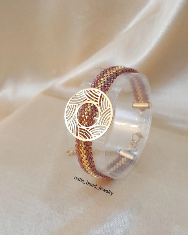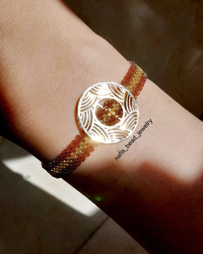 دستبند جذاب با بافته شده با مونجوقهای خاص و با کیفیت میوکی ژاپن. اتصالات استیل. قابل اجرا با بند کشویی و نخ دستبندی. طول دستبند ۱۴ سانت برای مچ معمولی و تا ۱۶ سانت برای مچ پرتر. ابعاد و وزن پلاک به دلخواه تغییر میکند.