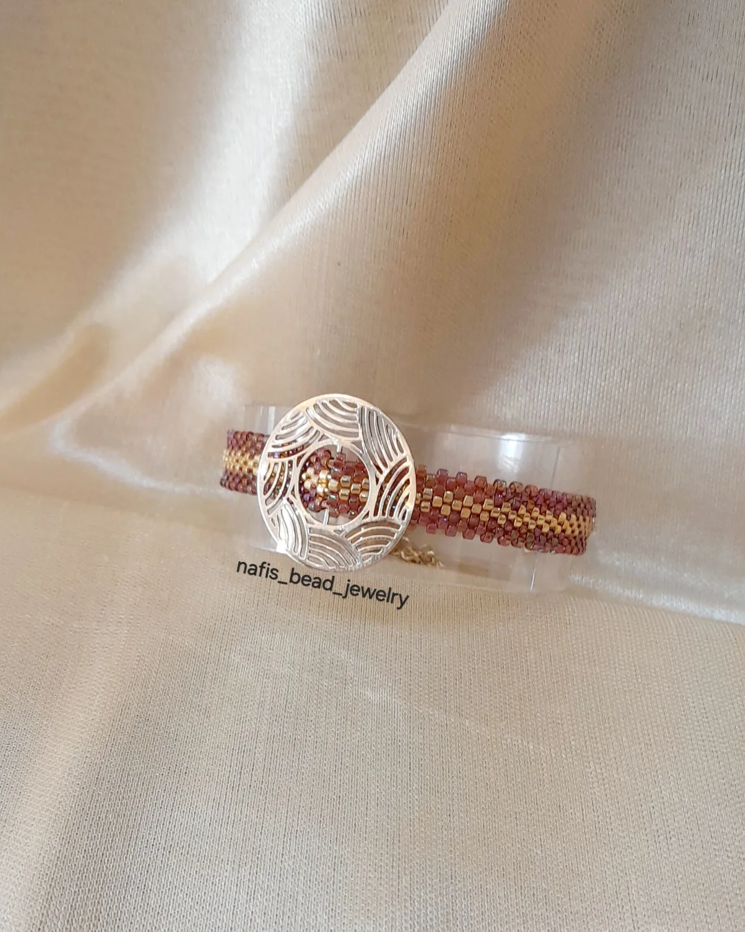دستبند جذاب با بافته شده با مونجوقهای خاص و با کیفیت میوکی ژاپن. اتصالات استیل. قابل اجرا با بند کشویی و نخ دستبندی. طول دستبند ۱۴ سانت برای مچ معمولی و تا ۱۶ سانت برای مچ پرتر. ابعاد و وزن پلاک به دلخواه تغییر میکند.