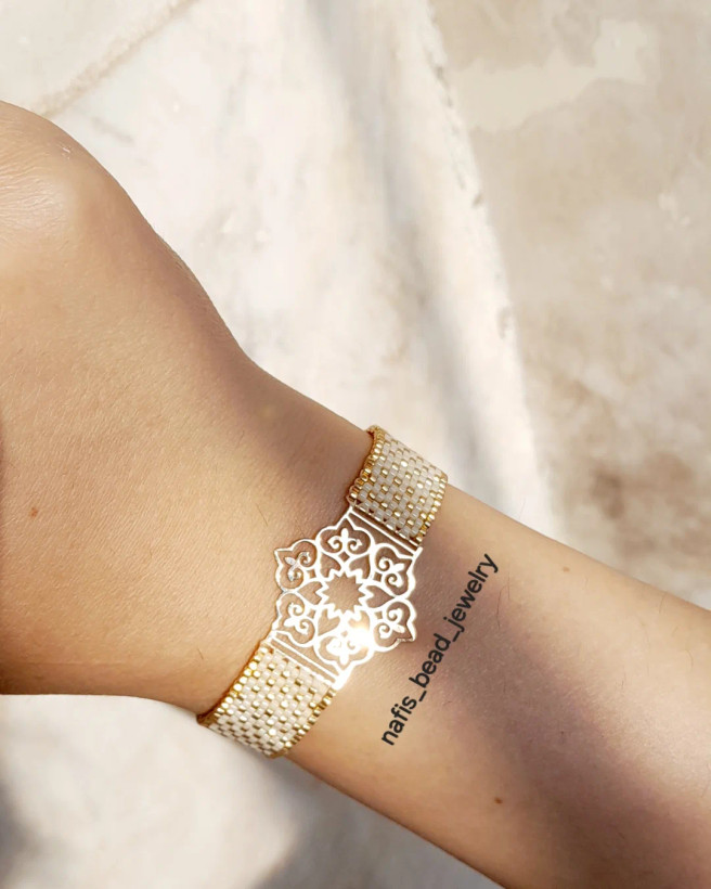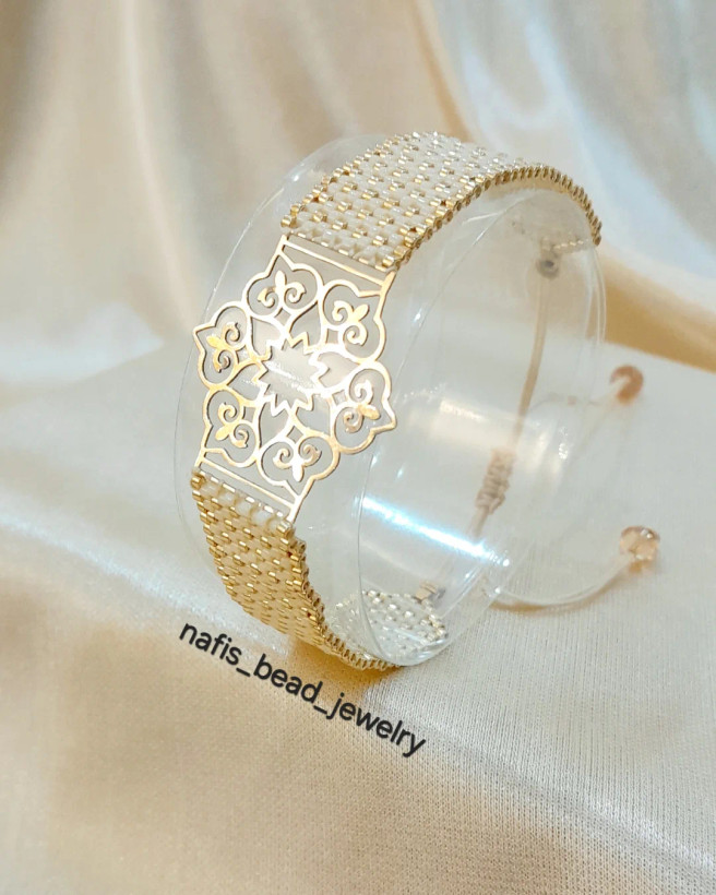 دستبند سفارشی پلاک طلا بافته شده با مونجوقهای خاص و با کیفیت میوکی