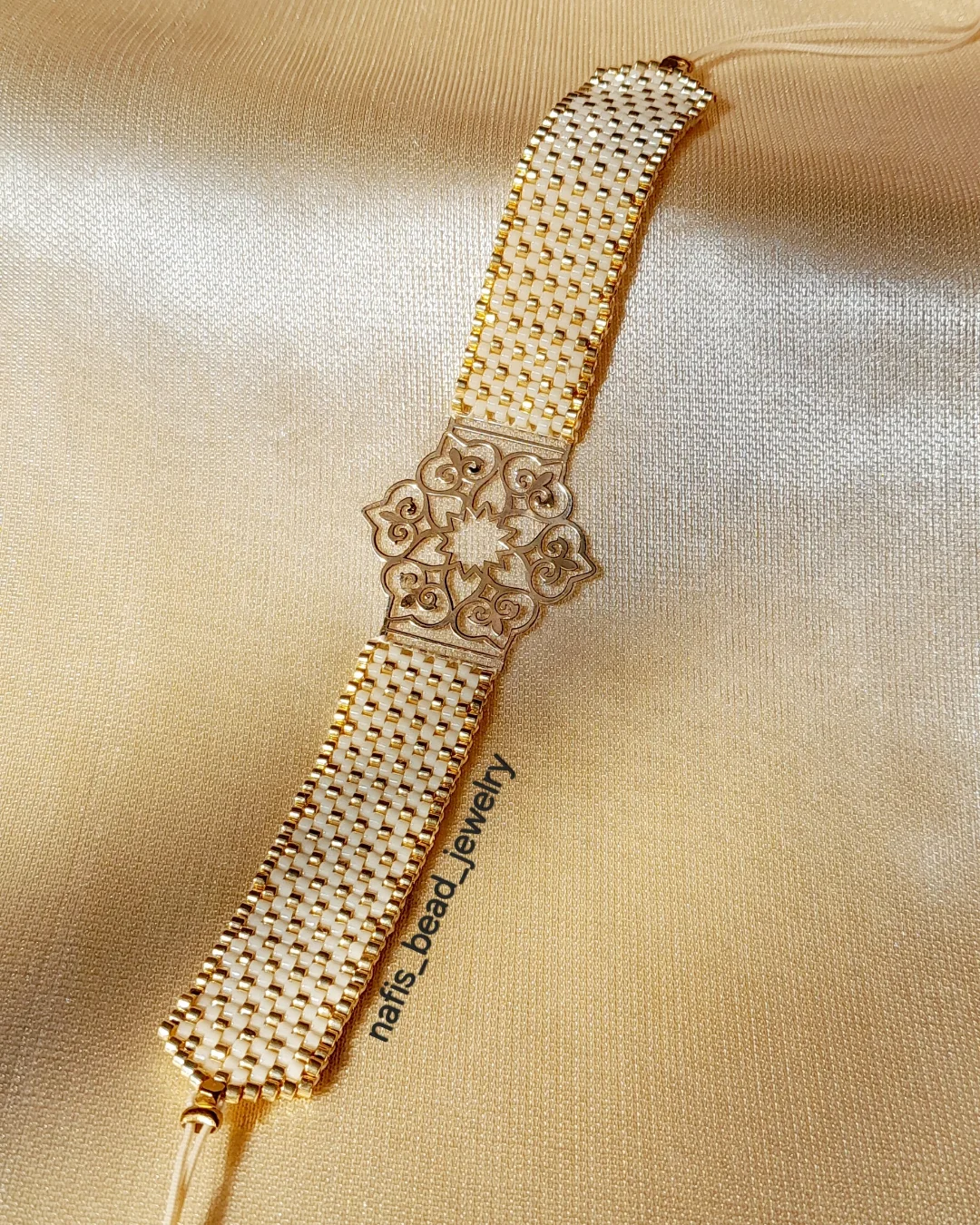 دستبند سفارشی پلاک طلا بافته شده با مونجوقهای خاص و با کیفیت میوکی