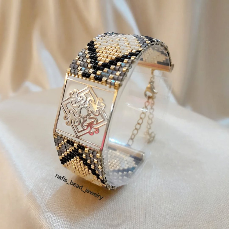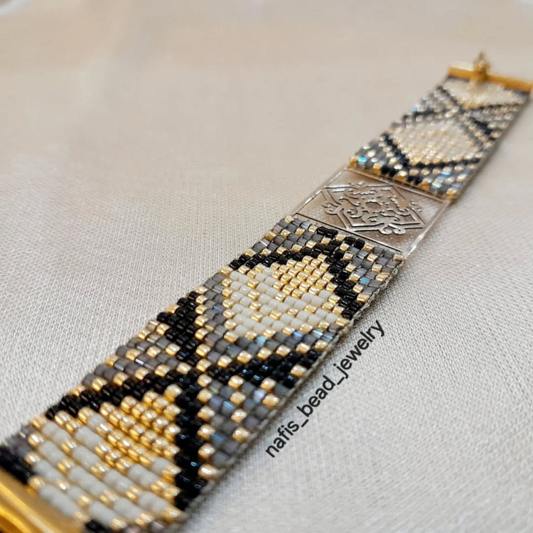 دستبند سفارشی پلاک طلا با مونجوقهای خاص