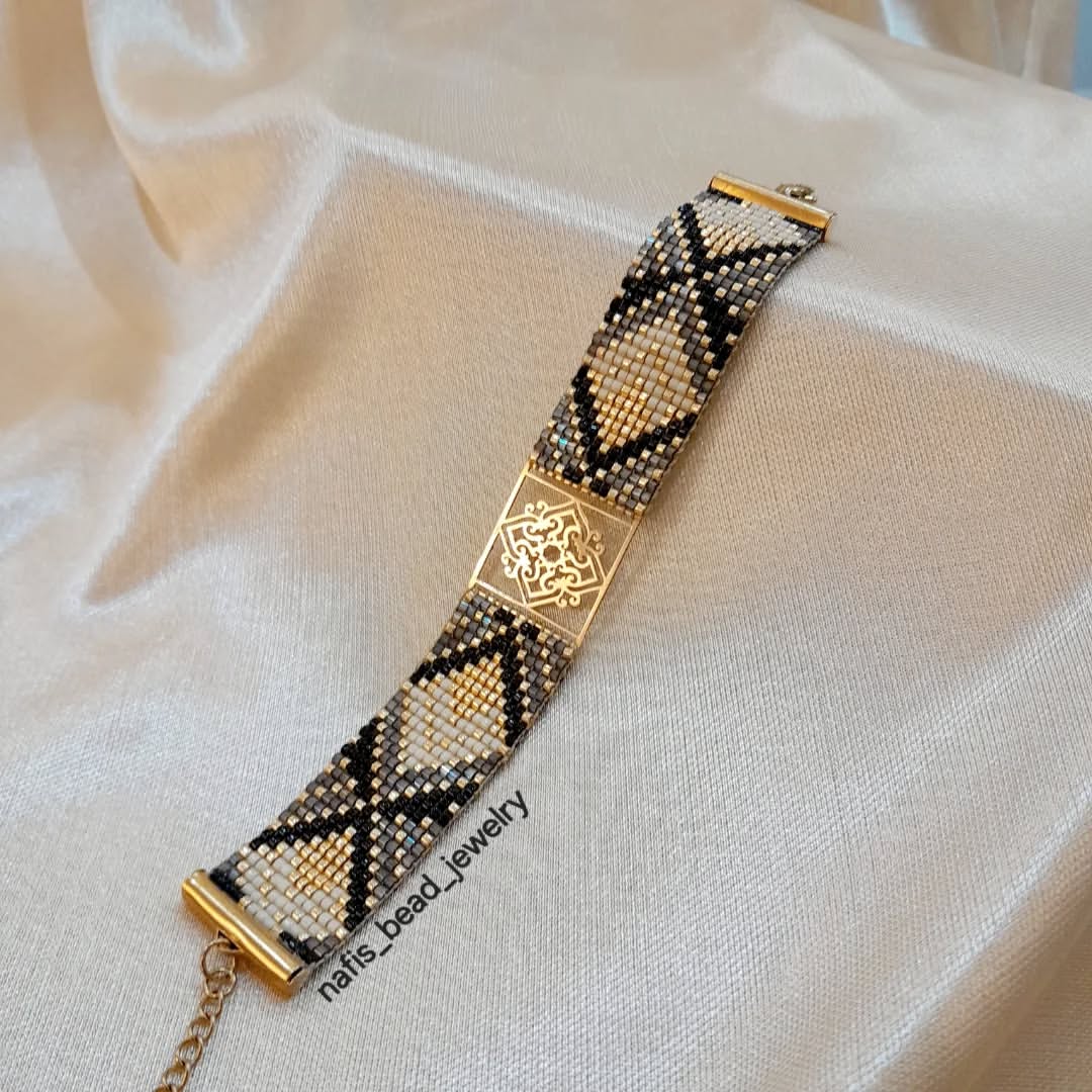 دستبند سفارشی پلاک طلا با مونجوقهای خاص