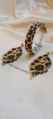 ست زیورآلات پلنگی شامل دستبند و گوشواره و آویز گردنی