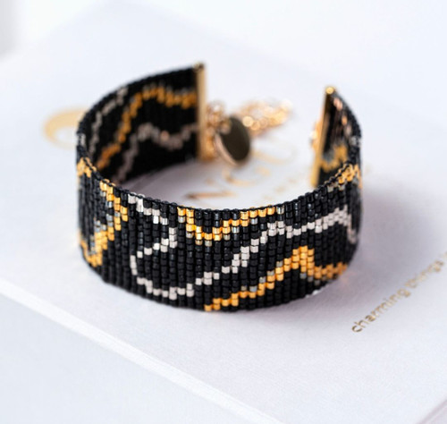 دستبند طرح پلنگی با پلاک طلا و میوکی