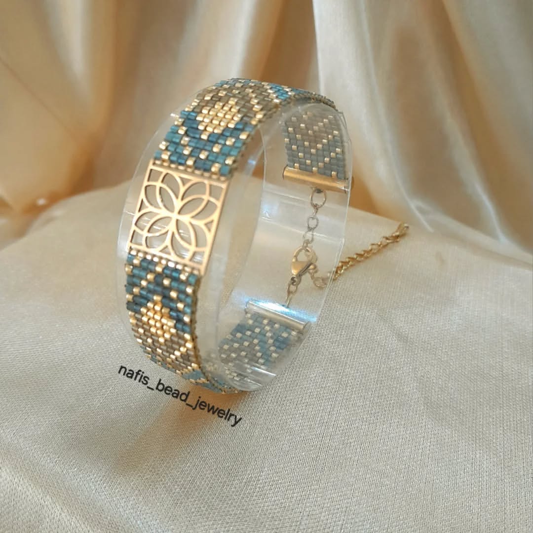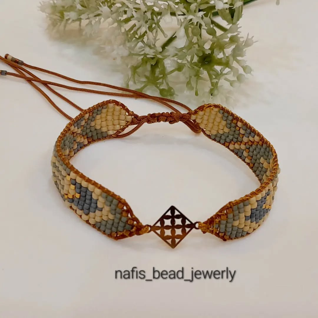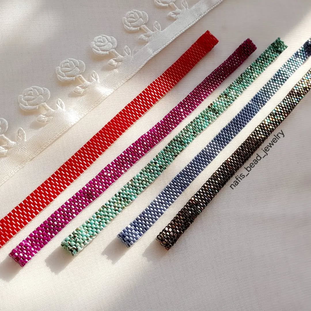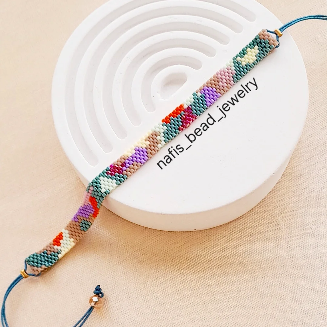 دستبند پلاک پنج رج بافته شده با مونجوقهای میوکی ژاپن