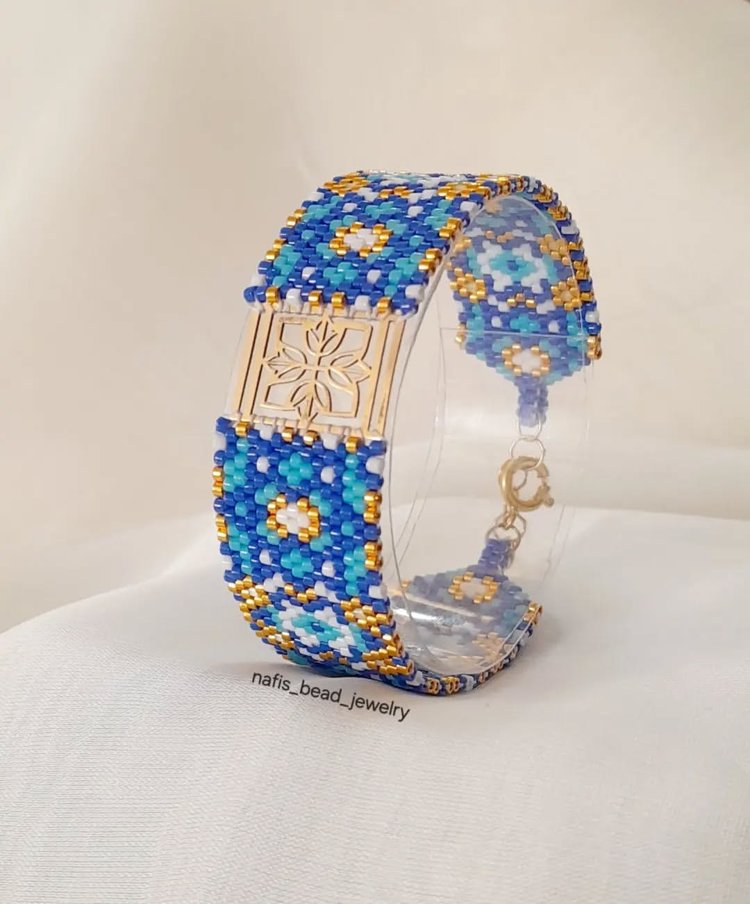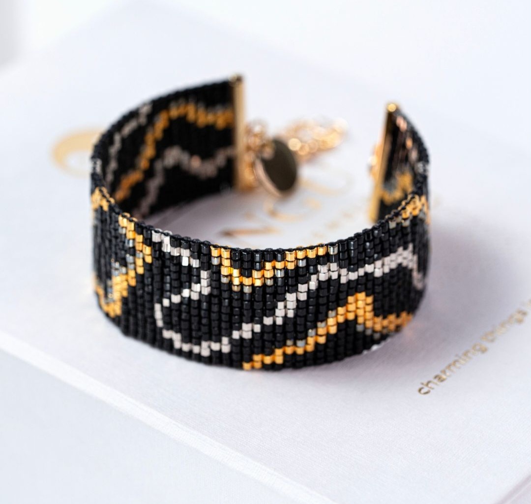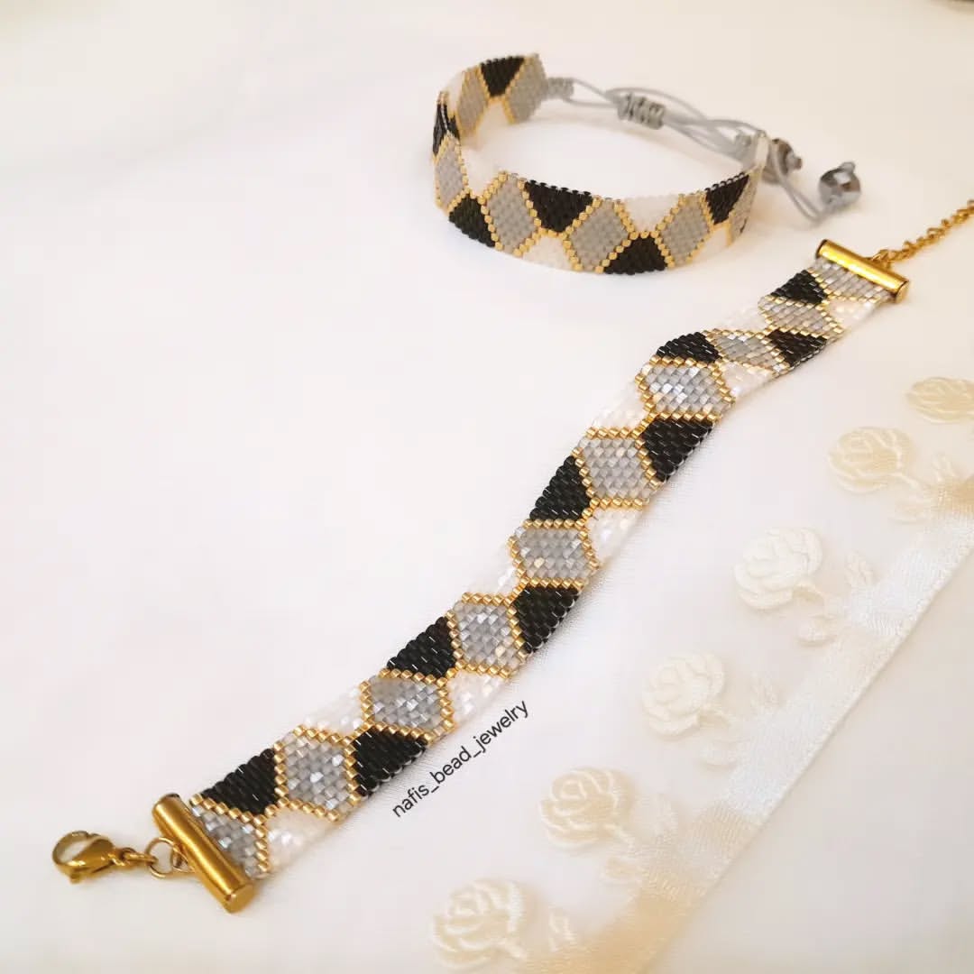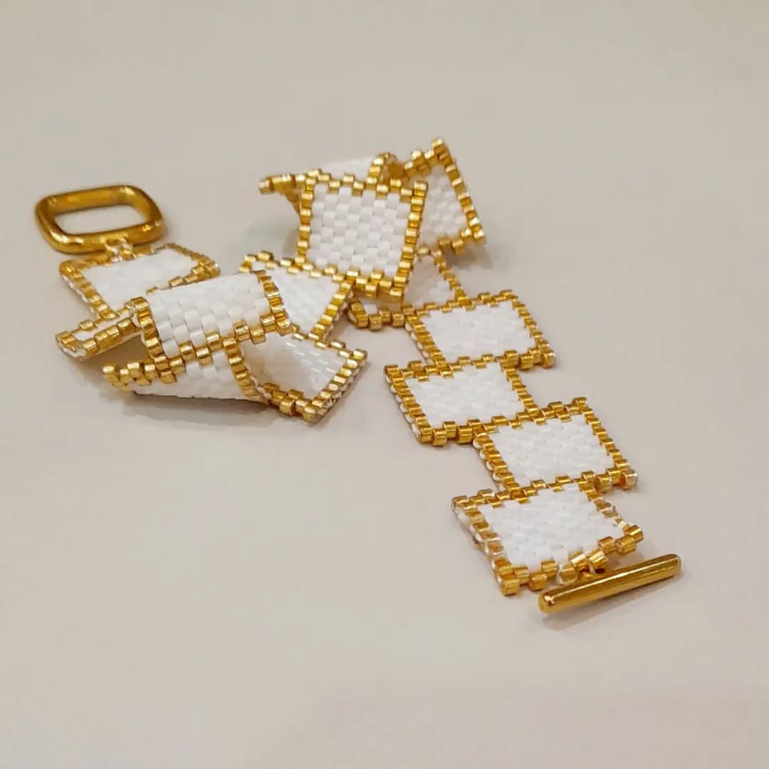 دستبند پلاک پنج رج بافته شده با مونجوقهای میوکی ژاپن