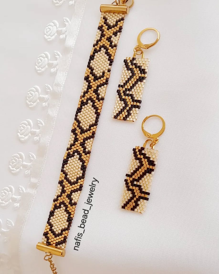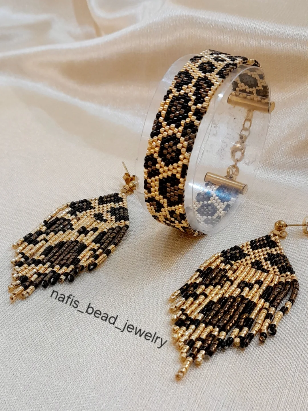 ست زیورآلات پلنگی شامل دستبند و گوشواره و آویز گردنی