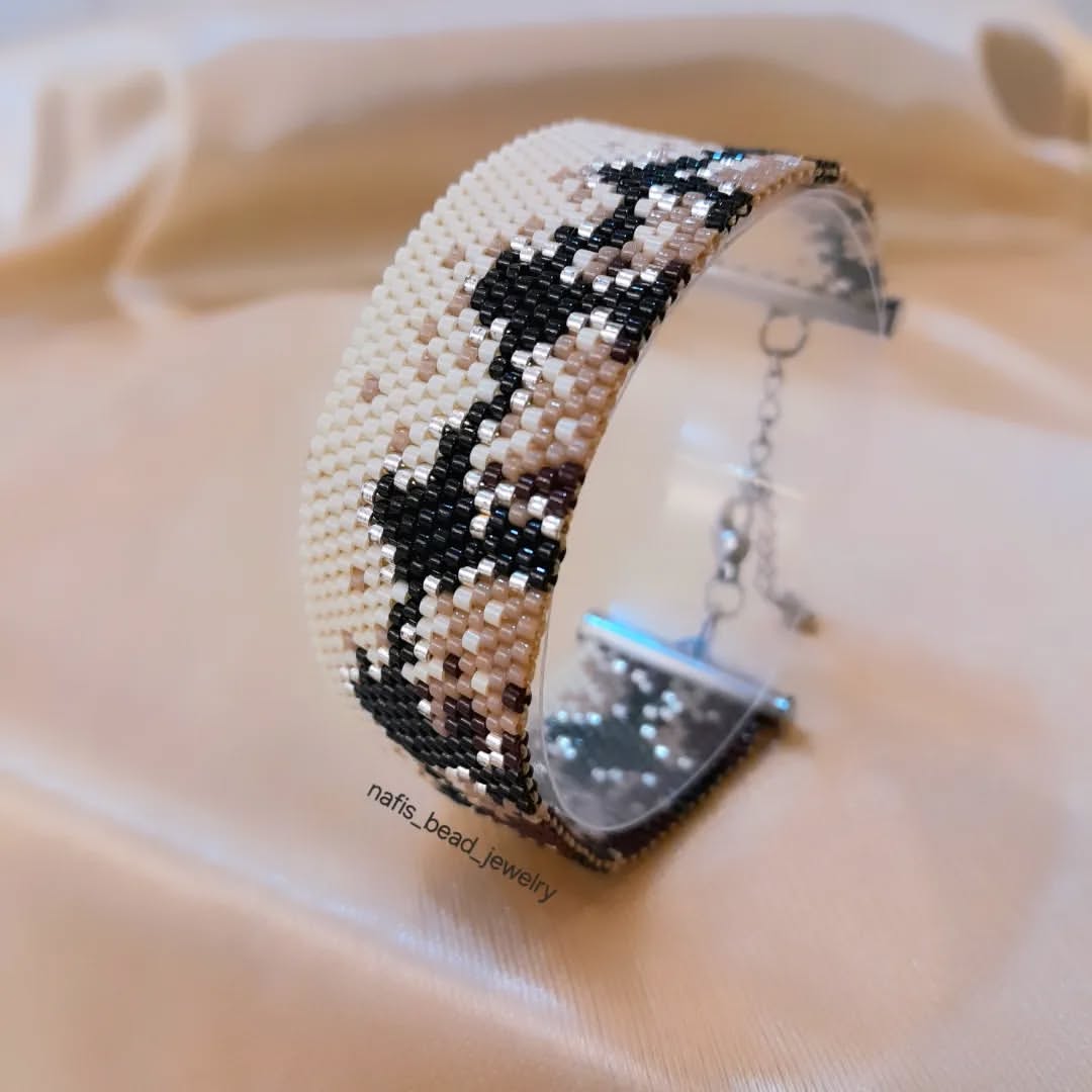 دستبند طرح پلنگی با پلاک طلا و میوکی