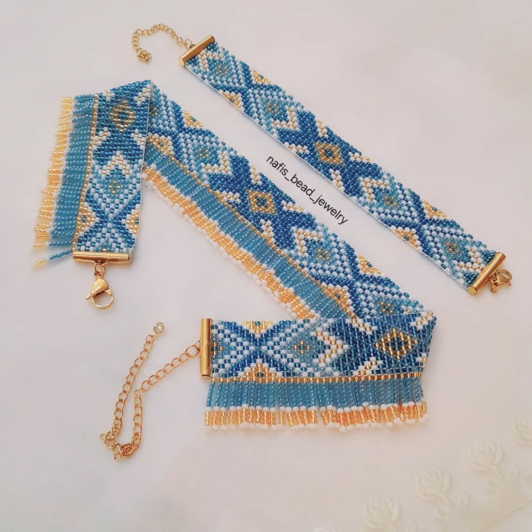 دستبند بافتنی با پهنای ۲.۵ سانت و رنگ آبی
