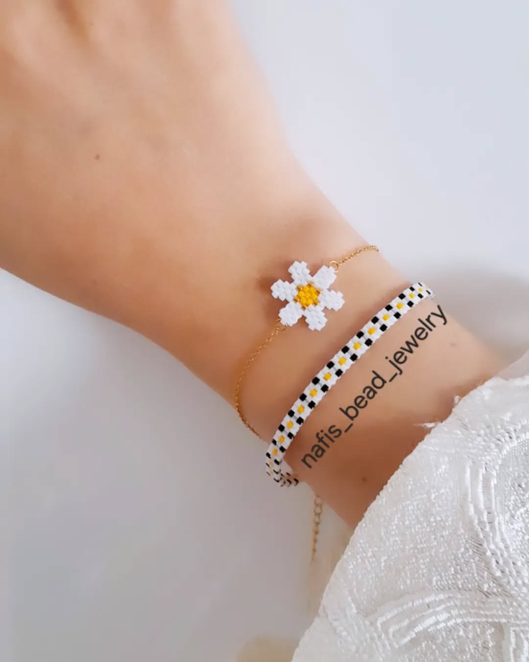 دستبند ترکیبی دو ردیفه بابونه